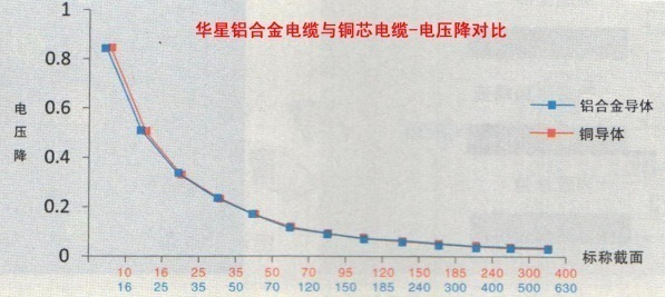 鋁合金電纜和銅芯電纜在同截面同等長度的情況下,其導(dǎo)電率是銅電纜的 61.8%,載流量約為銅電纜的78%,但其質(zhì)量不到同等電氣性能銅纜的一半。根據(jù)電纜截面的規(guī)格分布,將鋁合金電纜的截面增大1.5倍左右,載流量與電壓降等電氣參數(shù)與銅纜相當(dāng),因此在已知銅電纜型號規(guī)格的前提下,只需按照70及70以下小規(guī)格的銅纜對應(yīng)使用加大一個規(guī)格的鋁合金電纜,95及95以上直接對應(yīng)使用加大兩個個規(guī)格的鋁合金電纜即可,其電氣性能、機(jī)械性能及相應(yīng)的應(yīng)用指標(biāo)與原銅芯電纜設(shè)計(jì)標(biāo)準(zhǔn)一致,其實(shí)際使用性能更優(yōu)于原有的銅芯電纜設(shè)計(jì)標(biāo)準(zhǔn)。