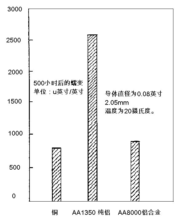 4、抗蠕變性能:銅、純鋁、鋁合金導(dǎo)體,在通過500小時(shí)的蠕變試驗(yàn)中,可以看到,和純鋁導(dǎo)體相比,鋁合金導(dǎo)體的抗蠕變性能約是純鋁的280%,和銅導(dǎo)體基本一致。